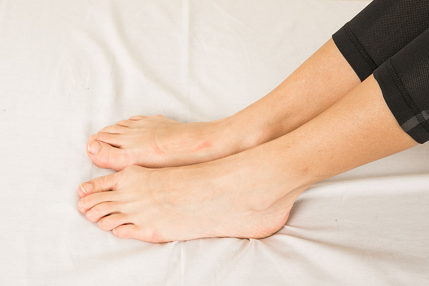 -Sit with your toes off the floor. -Press your toes together. -Hold your toe in this position for 20 to 30 seconds and then release.